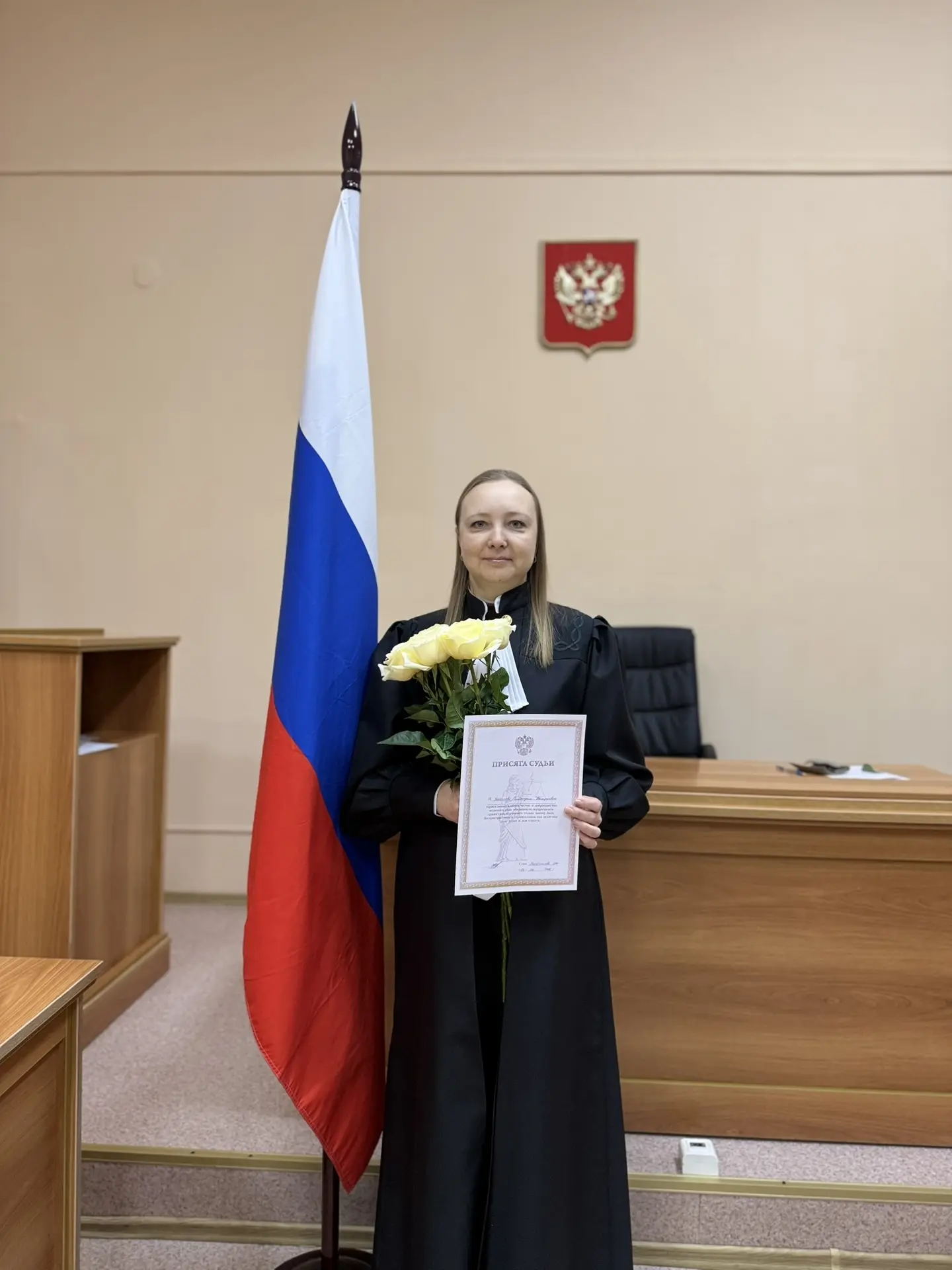 3 февраля 2026 года в здании Кировского районного суда г. Хабаровска состоялось торжественное принесение присяги мировым судьей Улыбышевой Екатериной Валерьевной. На основании постановления Законодательной Думы Хабаровского края от 28.01.2026 Улыбышева Екатерина Валерьевна назначена на должность мирового судьи судебного участка №17 судебного района «Кировский район г. Хабаровска» на трехлетний срок полномочий. В соответствии с приказом Управления Судебного департамента в Хабаровском крае Улыбышева Екатерина Валерьевна 03 февраля 2026 года зачислена в штат судебного участка №17 судебного района «Кировский район г. Хабаровска». Свой карьерный путь Екатерина Валерьевна начала в 2005 году с должности секретаря суда, далее занимая разные должности, вплоть до начальника общего отдела. С 2019 года работала в должности помощника председателя Кировского районного суда г. Хабаровска. Поздравляем Екатерину Валерьевну с началом нового этапа профессиональной деятельности и желаем профессиональных успехов в деле отправления правосудия! ![]() |
